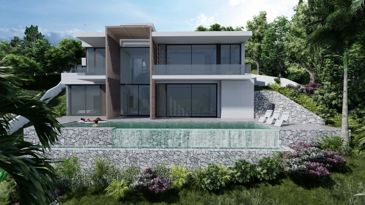 The villa project of 390m², offers 4 spacious bedrooms with bathrooms, spacious living room with open kitchen as well as a large terrace and a modern infinity pool.