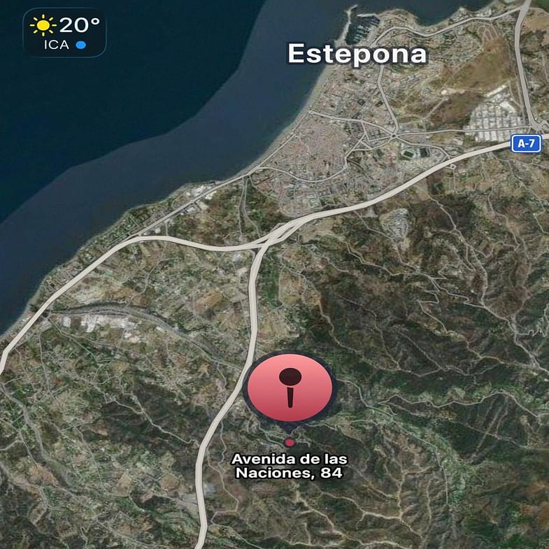 Access is fully paved and convenient, in a well-established residential area with several villas nearby. The property is only an 8-minute drive from the beach and the ALDI supermarket, 15 minutes from Estepona town center, and 25 minutes from Marbella. It is also located next to the Estepona Tennis Club and close to the exclusive Laguna Village and Beso Beach, two of the best beach clubs and restaurants in the area.