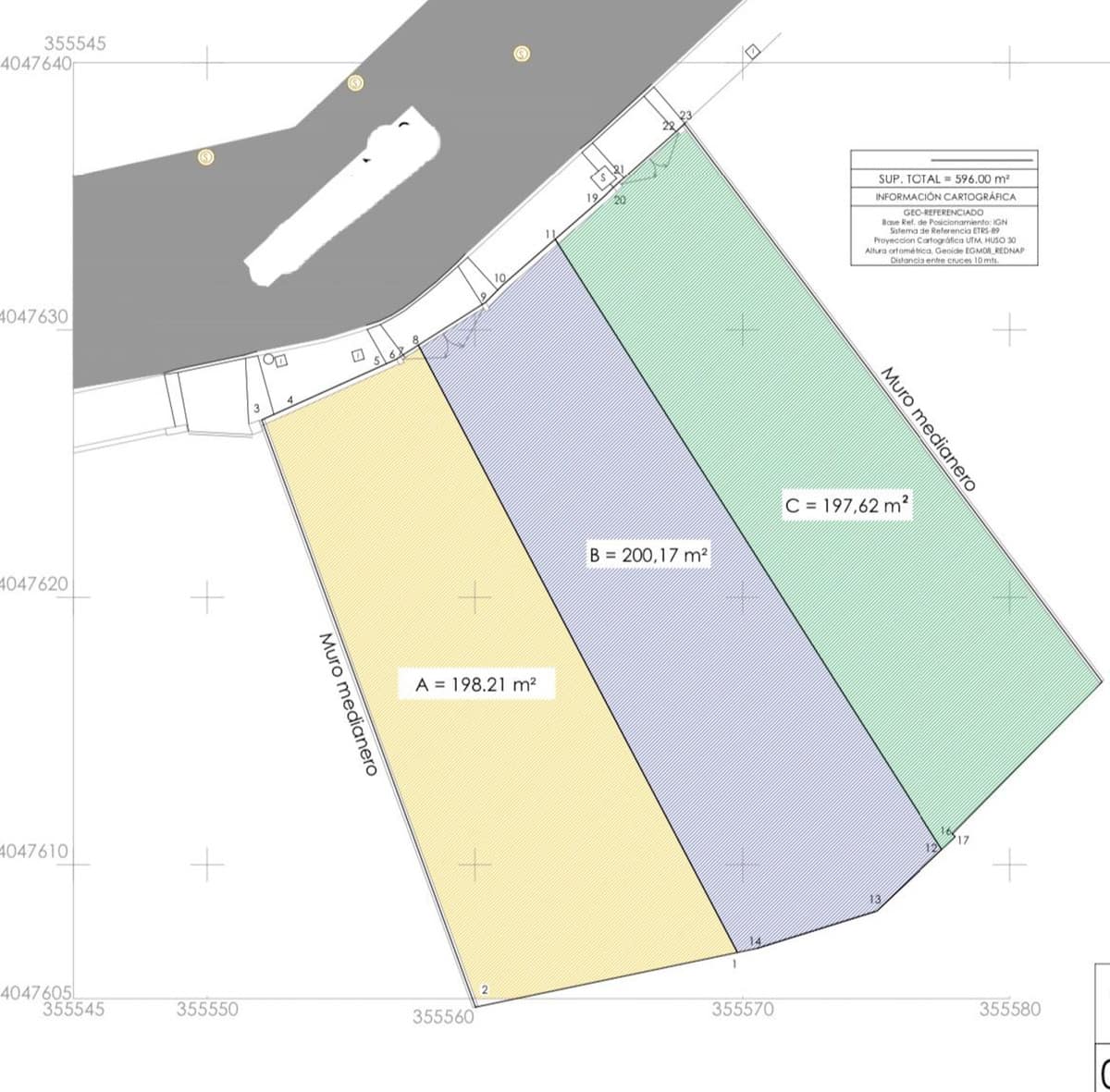 The urban plot in the urbanization Los Pacos, Fuengirola, has an area of 600 m2 divided into three equal plots for a project to build townhouses of 150 m2 each plus basement floors. The plot is also suitable for the construction of a family home. Just a few minutes walk from the city promenade and two private schools makes it an integral part of the city's infrastructure.
