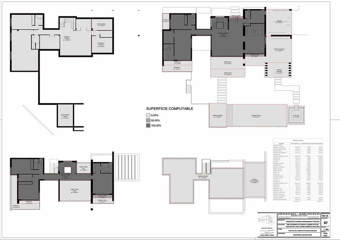 The project is fully prepared and ready for execution. The granted licence allows for the construction of a contemporary villa with a total built area of approximately 656 m². Approximately 392 m² are above ground and approximately 268 m² form the lower residential level. In addition, more than 480 m² of terraces and outdoor space are planned. The lower level is designed as a fully functional living floor. Additional bedrooms, wellness area, gym, cinema or entertainment space can be realised without compromise. This is an integrated residential level within the overall concept. Above ground, the design focuses on open spaces, light and sightlines. Large glass panels connect the living areas directly with the terraces and swimming pool. The design maximises the orientation, privacy and views.