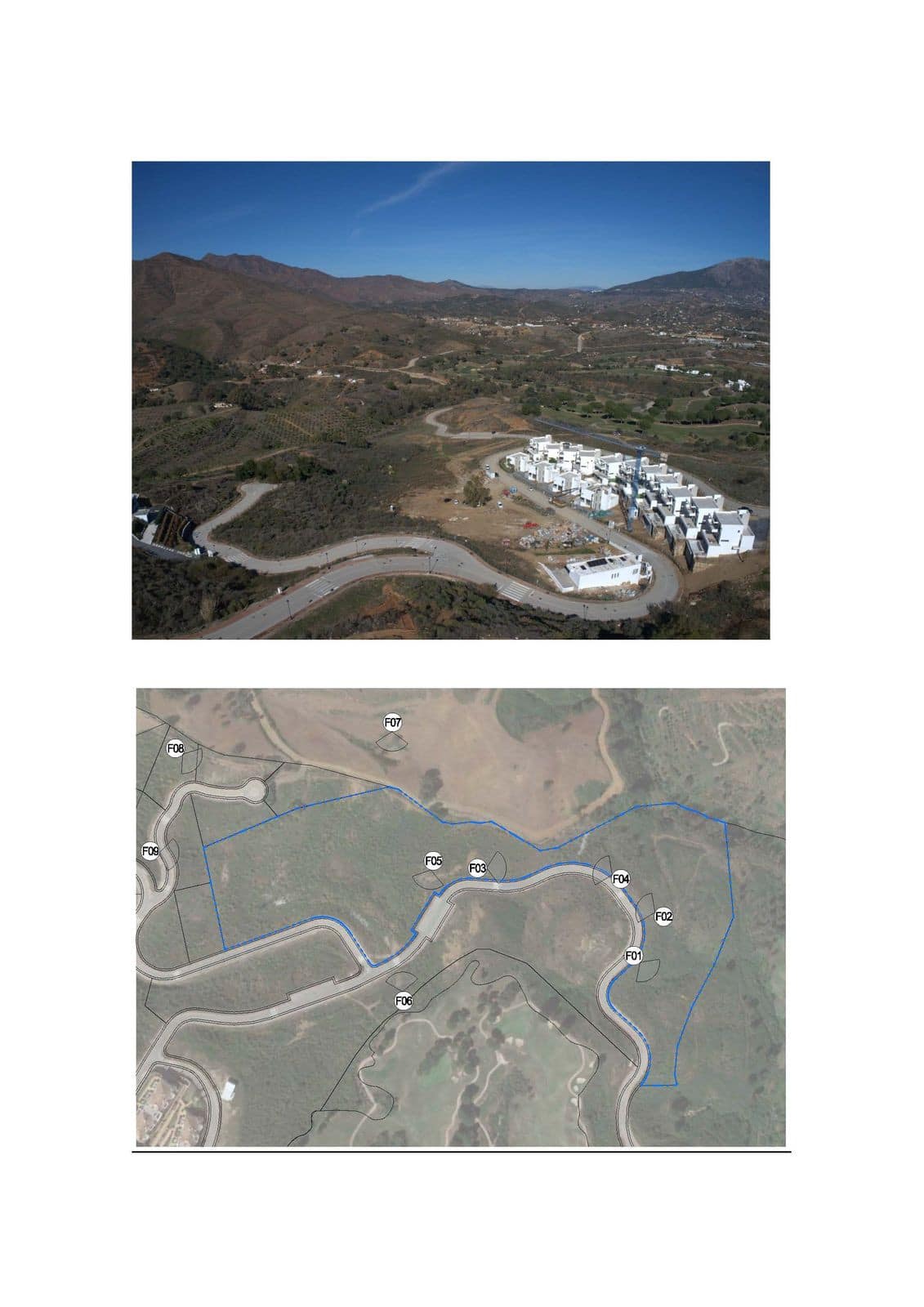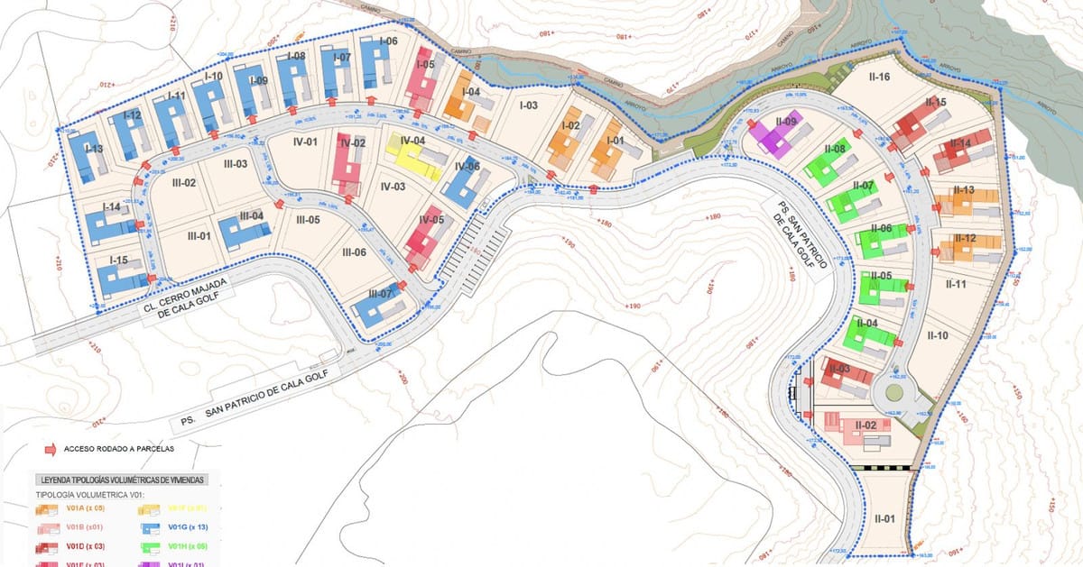 The approved Preliminary Building Study (Estudio Previo) defines the masterplan as a private residential complex divided into four construction phases, each with independent access and licenses. The villas will be developed as individual plots within a gated community featuring private roads, parking areas, landscaped zones, and communal green spaces. This structure guarantees privacy and comfort while optimizing the natural terrain and the elevated views over the golf course and surrounding valleys.