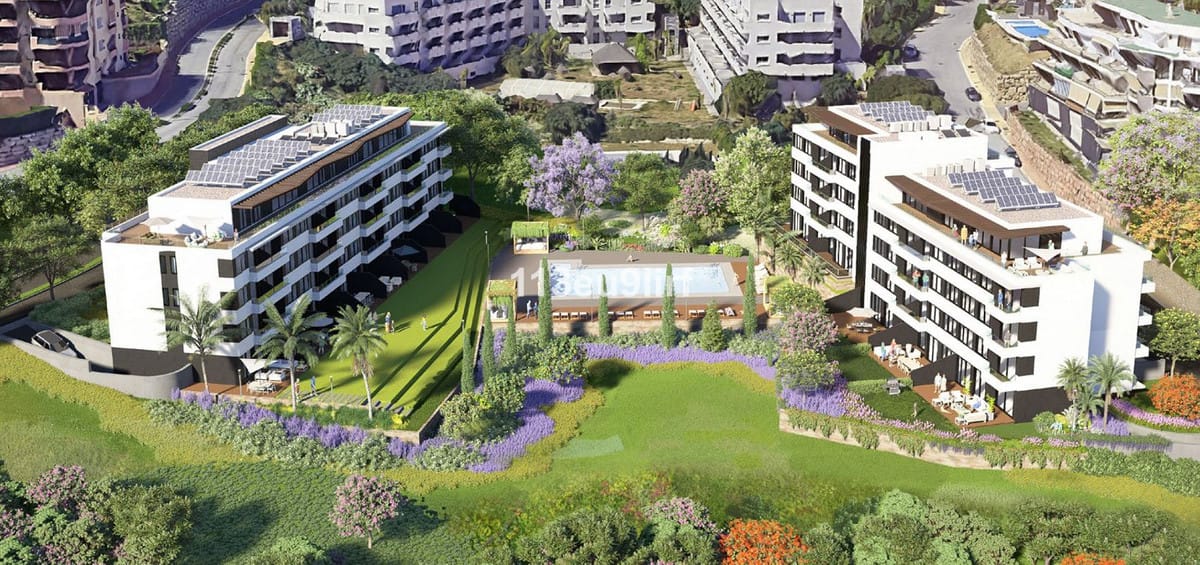Land in Riviera del Sol with the possibility of developing 64 apartments with 2 and 3 bedrooms, each one with its own storage room and parking space. Buildable area of 7.080 m2 for residential use, compatible with hotel use. Construction license granted in 2012 and expired. Preliminary project for two residential blocks with 7.017 m2 built above ground.