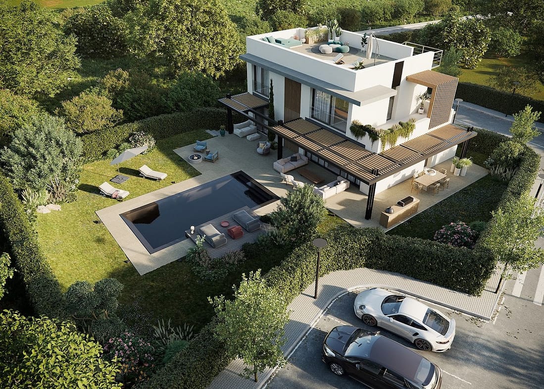 Five plots for sale in the super fast developing area of the "New Golden Mile" – Selwo, where the most prestigious private American school, cafes, new SPA-center with tennis and paddle courts and the best beaches are located.