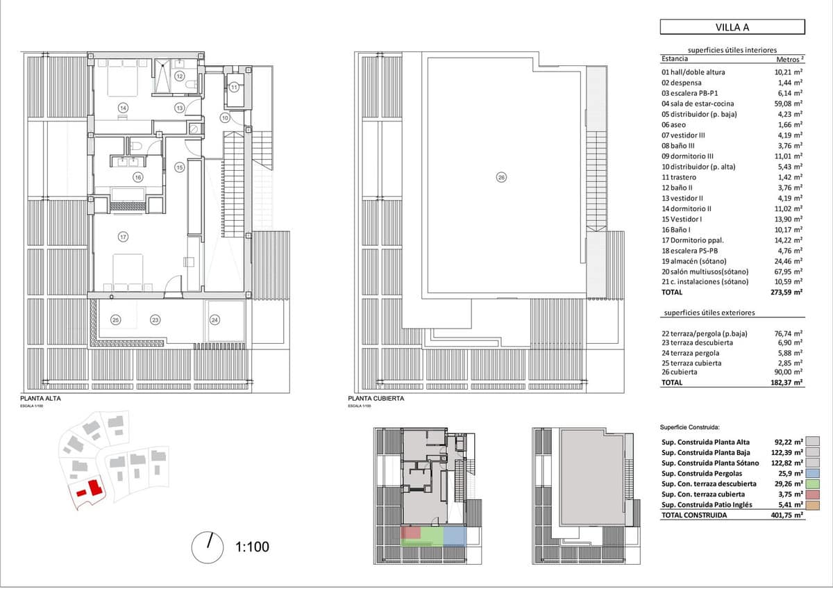 The plots measure between 800 – 857 meters, the permitted construction percentage is 25% plus basement.