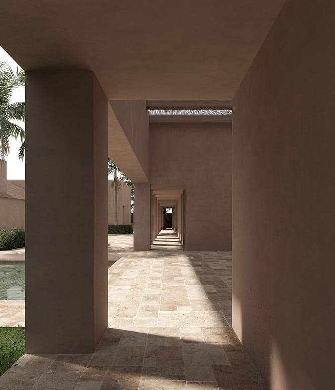 The residence, known as VILLA SANTIAGO, uses symmetries, courtyards and classical rhythms, combined with contemporary spaces and cutting-edge technology, such as pocket windows that connect the interior and exterior, transforming the spaces into porches.