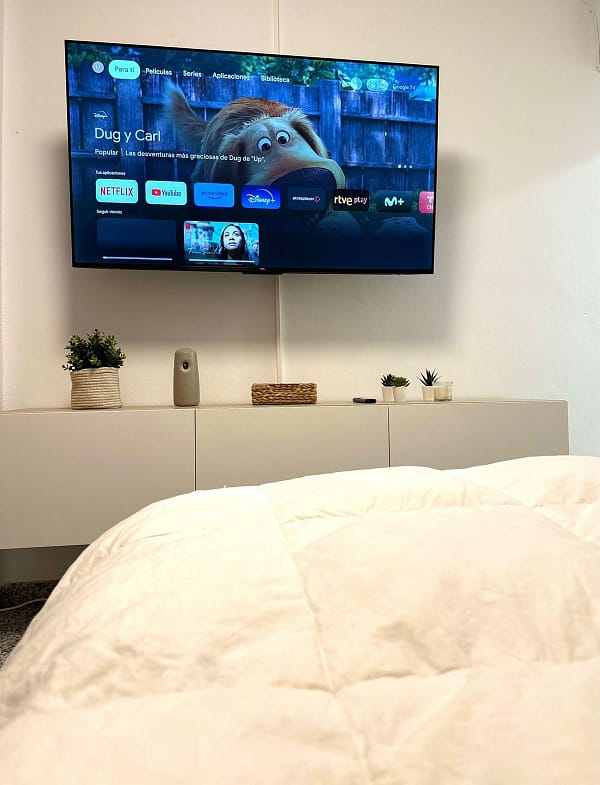 The interior comprises a bright living/bedroom area opening directly onto the terrace, as well as a fully equipped kitchen and a renovated bathroom that combines functionality with contemporary aesthetics.