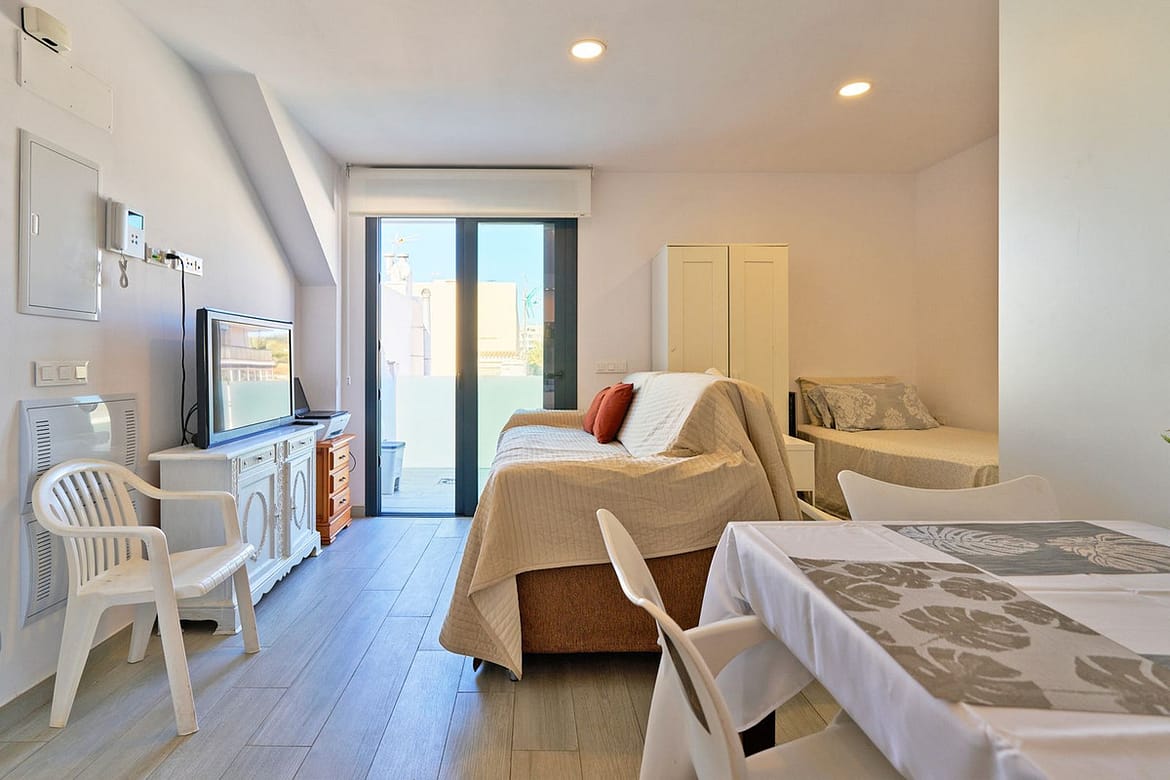 In the heart of La Cala de Mijas, where daily life feels easy: shops, restaurants, transport, neighbourhood life… and the sea as a beautiful routine, because the beach is just a 2-minute walk away.